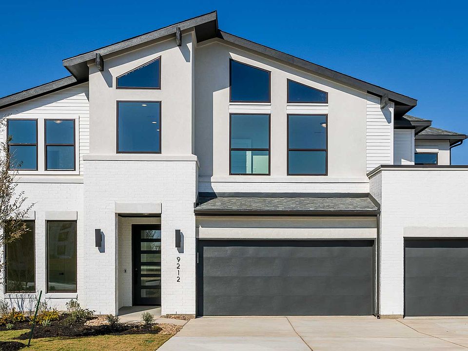 Front porch opens into the two-story entryway. French doors lead you into the private home office with three large windows. The family room boasts a wall of windows and a 19-foot ceiling. The kitchen has an island with built-in seating, walk-in pantry and opens into the corner dining area embraced with windows. The primary bedroom offers ample natural light with a wall of windows. French doors lead into the primary bathroom which hosts dual vanities, a garden tub, separate glass enclosed shower, two walk-in closets, and access to the utility room. Upstairs opens into a game room which has attic access. French doors lead into the media room. Two secondary bedrooms featuring walk-in closets and full bathrooms complete the second floor. A private guest suite is off the entryway. Covered backyard patio. Mud room opens into the three-car garage. Representative Images. Features and specifications may vary by community.