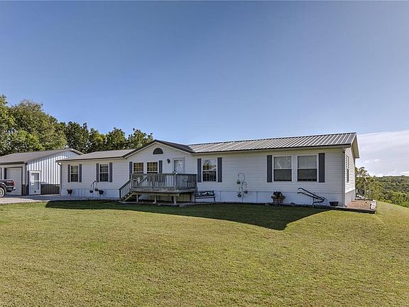 An outdoorsman's dream! 25 acres m/l of timber with a creek running through - deer, turkey, you'll see it all! 4 bed, 2.5 bath home with amazing views overlooking your beautiful property. Updated kitchen with large pantry, large living/family room area, separate dining room, and newer flooring throughout. Oversized detached garage with room for vehicles and toys! Additional workshop with electricity and half-bath with a downstairs work area that doubles as a storm shelter.