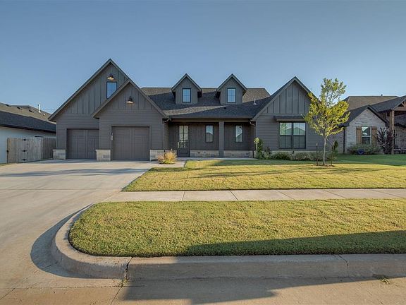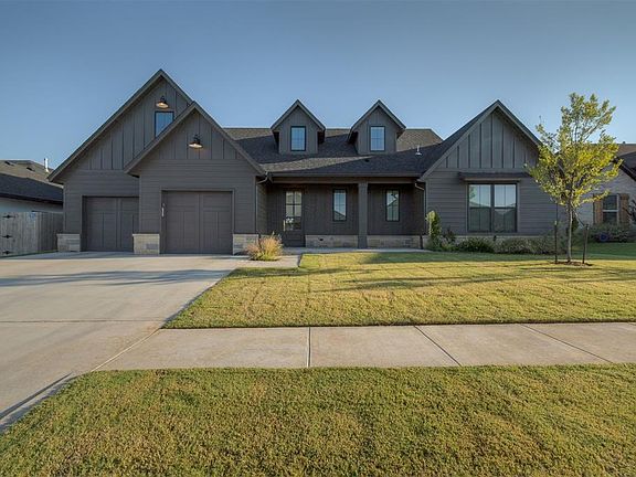 Beautiful Modern Farmhouse in Crestone Ridge – Built by Harrison Kennedy Homes, this residence combines bold design with a functional, open layout. The living area features a wall of windows overlooking a covered patio, ideal for indoor-outdoor living. The chef’s kitchen offers premium appliances, generous storage, and a large island. A private pocket office, two bedrooms with a Jack & Jill bath, stylish powder room, laundry room, and mudroom with three-car tandem garage access add convenience. The primary suite includes cathedral ceilings, a spa-style bath, and a spacious walk-in closet. Upstairs, a versatile bonus room offers endless possibilities. Located in Crestone Ridge within the Yukon School District.
