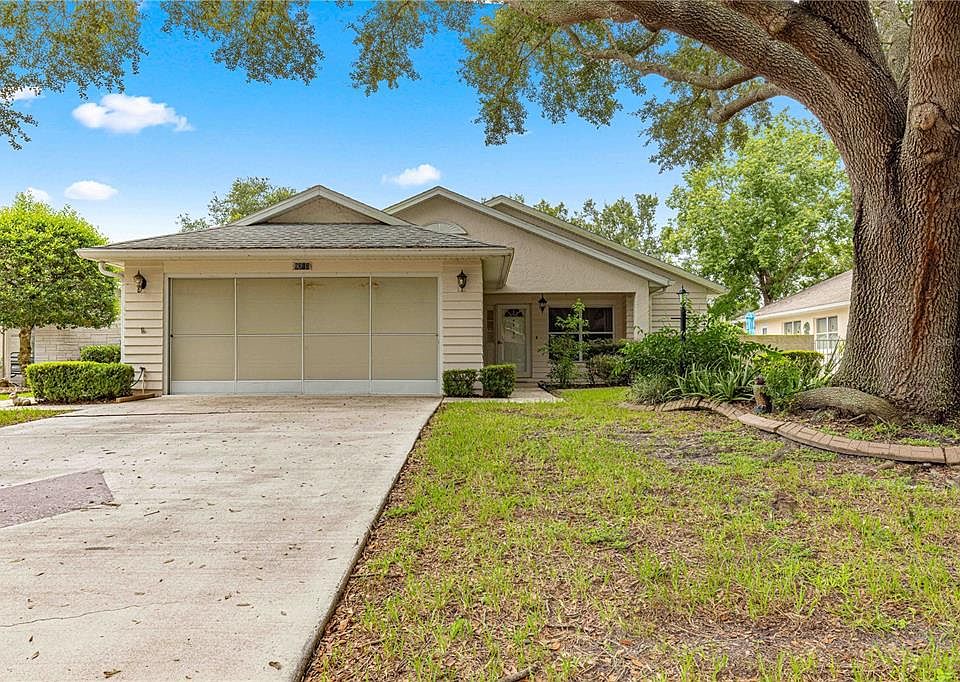 IMPROVED PRICE! 3 bedroom, 2 bath, 2 car garage located in the premiere 55+ community of On Top of the World. This Jefferson model is sitting on the GOLF COURSE. When entering you will notice the soaring vaulted ceilings. The formal dining room has two skylights and in the evening you can even get a beautiful view of the moon. The kitchen features newer kitchen cabinets and plenty of them. Granite counters, pretty glass tiled backsplash and a newer SS refrigerator. There is a spacious living room leading to an enclosed all season room giving you plenty of space to entertain with views of the golf course. No carpet in this home. Wood look laminate and tile throughout. King sized primary bedroom with a large walk-in closet and an en suite bath. This primary bathroom has been updated with a double sink granite counter and all tile step in shower featuring full body jets. The two guest rooms are just the right size and there is a guest bath with granite counter and tub/shower combo. There is also a large courtyard to the side of the home to enjoy on a nice day. OTOW offers golf, swimming, dog parks, clubs to join and many more amenities. Along with golf cart access to shopping centers. Roof 2011, A/C 2011. Call for your appointment to see today.