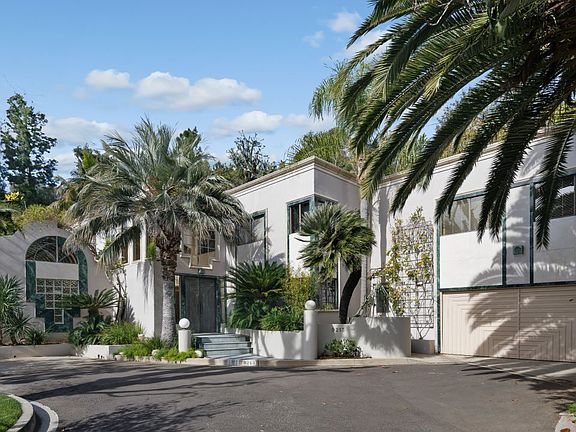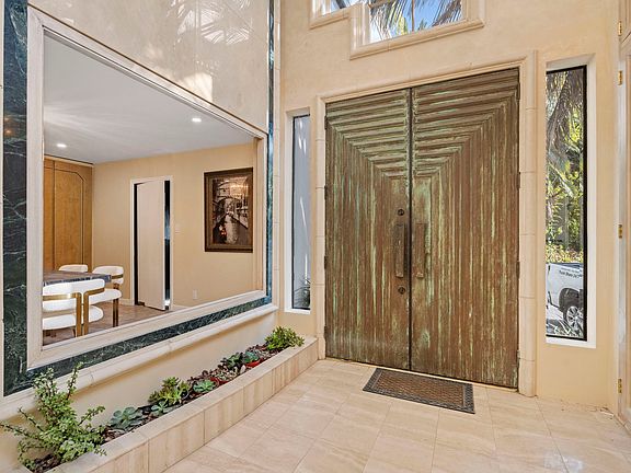 A glamorous travertine staircase, highlighted by a striking Lucite railing crafted by the renowned Charles Hollis Jones, sets the tone for timeless luxury. Impeccably designed, the spacious rooms are perfectly suited for grand entertaining, while the inviting patios are framed by lush, mature landscaping. At the heart of the property, a dramatic pool pavilion offers a serene escape.
