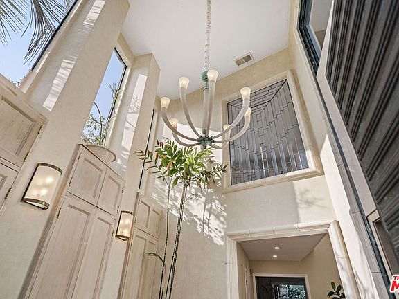 Iconic Deco residence in the prestigious Bird Streets. This home offers elegance & sophistication perfect for entertaining or retreating in style. Nestled at the end of a quiet cul-de-sac, 5 bedroom, 5.5 bath home approx. 5,500 square feet of elegant interiors and seamless indoor-outdoor living. A sweeping travertine staircase with a spectacular Lucite railing by celebrated designer Charles Hollis Jones anchors the entry and sets the tone for the home's Hollywood elite. Generously scaled living and dining areas open to sun-drenched patios, mature landscaping creates a private backdrop around dramatic pool pavilion. Located off Sunset Blvd yet tucked away in a serene enclave. Recently renovated, the property also features brand-new, extra-large bathrooms crafted entirely from exquisite Dekton and marble, upgraded electrical systems, and recessed lighting throughout, enhancing both functionality and ambiance. This home boasts an impressive array of amenities, including an indoor pool, Jacuzzi spa, private gym and a relaxing sauna. A rare opportunity to own a flawlessly restored architectural masterpiece. Property is also available for lease option $25k fully furnished