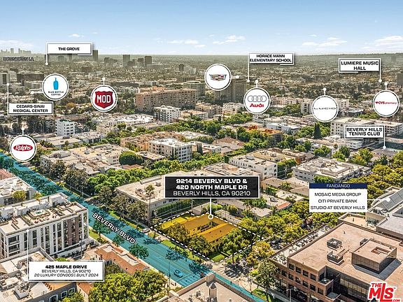 The property built in 1949, consists of fourteen units, totaling 10,210 rentable square feet on a 13,140 square foot lot. This 14-unit apartment building features a well-balanced mix of 2 two-bedroom, one-bathroom units and 12 one-bedroom, one-bathroom units (two currently vacant, with one including a balcony). The property includes on-site laundry facilities, 14 parking spots, and beautifully maintained landscaping. The unit interiors are designed with a combination of carpet, hardwood, and tile ooring, painted drywall, and aluminum-frame windows. Kitchens are equipped with hardwood cabinets, tile countertops, a four-burner gas range/oven, and dual-basin sinks, while bathrooms feature laminate and tile ooring, shower tiling, vanity sinks, cabinetry, and wall mirrors. Units include central gas heating and window-mounted air conditioning units. The Beverly Hills location adds signicant value, as the area is known for its luxury real estate and high rental demand. is strategically located in a highly desirable area within Beverly Hills, offering a blend of residential and commercial advantages. The property is situated in a neighborhood characterized by a mix of low to medium-density multifamily residences, with nearby streets such as Maple Drive and Palm featuring apartment buildings from the mid-20th century. This area has experienced substantial redevelopment over the past three decades, including the construction of modern 3-4 story apartment and condominium properties, indicating a trend toward upscale living. Directly northeast of the property, stands a newly developed ve-story condominium, adding to the area's growing appeal. 425 Palm is a limited collection of 20 timeless residences in Beverly Hills that have been commissioned as individual works of art. These luxury residences feature open oor plans with one, two, or three bedrooms, all appointed with exquisite nishes. To the west, on Maple Drive, a 175,000 SF ofce complex built in 2003 houses prestigious tenants like Fandango Media LLC, Mosaic Media, and the Wall Street Journal, offering Class A ofce space that enhances the area's professional and commercial prole. Additionally, Cedars-Sinai Medical Center, a major healthcare facility located approximately 0.70 miles east, further boosts the area's attractiveness by providing essential services and employment opportunities. Approximately 0.50 miles southwest, the renowned Beverly Hills "Golden Triangle" centers on Rodeo Drive, a luxury shopping destination featuring high-end retailers such as Tom Ford, Fendi, Valentino, and Cartier. This proximity to elite shopping and dining options underscores the property's location in a high-value, high-demand area. Overall, 9214 Beverly Blvd. benets from its position within a vibrant and evolving neighborhood, combining residential charm with access to commercial amenities and luxury attractions.