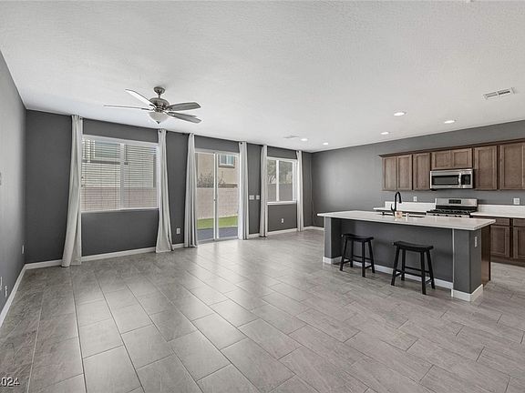 GORGEOUS 4 bedroom, 2.5 bath home located in the BOOMING southwest part of Las Vegas! Home features great curb appeal with large shade trees, paver stone driveway and sits near the end of the cul-de-sac. Interior features a BRIGHT & OPEN floor plan with modern finishes! Upgrades include custom cabinets & Calacatta Quartz throughout kitchen and bathrooms! Large kitchen island, stainless steel appliances, separate dining area, recessed lighting, and WI pantry! Upstairs with upgraded carpet & pad. HUGE primary bedroom with ceiling fan, recessed lights, walk-in closet, and bathroom with AMAZING CUSTOM tile shower and separate tub! Good size secondary bedrooms and separate laundry room upstairs. Beautiful backyard that is elevated from rear neighbors and has a paver stone patio & low maintenance artificial grass! Home sits near end of cul-de-sac and has large shade trees and paver stone driveway!