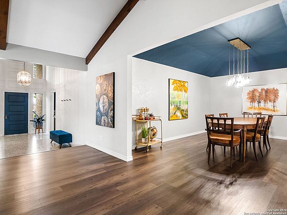 Elegant Mid-Century Modern Garden Home in Serene Cul-de-Sac Step into the tranquility of this Mid-Century Modern Garden home, nestled in the peaceful cul-de-sac of the esteemed Windcrest neighborhood. This unique area boasts its own dedicated police and fire departments, ensuring a safe and secure environment under the watchful eye of its own Mayor. This home features a 3-bedroom, 2.5-bathroom layout, each room offering generous dimensions and ample closet space to accommodate your lifestyle with ease. As you enter, the home welcomes you with its original Terrazzo tile, leading you to the expansive living areas adorned with sleek vinyl plank flooring that exudes contemporary elegance. The living room is a statement of comfort with its vaulted ceilings, adorned with large wooden beams, and a grand fireplace that invites you to relax and unwind. The kitchen has been thoughtfully updated, now gleaming with stainless steel appliances and chic new hardware, ready for culinary adventures. Located in a community that provides effortless access to FT SAM and the Medical Center, this home is also a cyclist's dream, with BAMPSY within pedaling distance. Moreover, you're just a 10-minute journey away from the airport and the vibrant heart of downtown. A comprehensive list of improvements has been meticulously documented, highlighting upgrades such as the HVAC system, water heater, modern flooring, ambient lighting, and the stylish transition to paddle switches. Additionally, a covered patio has been transformed into a versatile study or bonus space, adding to the home's appeal and an additional approx. 161 sqft. to your home. Embrace the allure of this Mid-Century gem, where classic charm meets modern living in a locale designed for convenience and comfort.