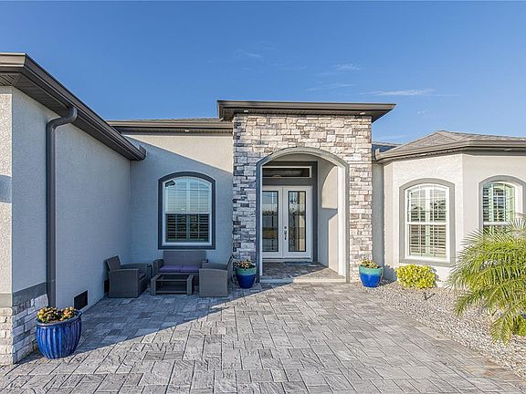 Experience the Best of Florida Living in This Stunning 3-Bedroom, 3-Bathroom Pool Home on a Peaceful South Gulf Cove Zephyr waterway. If you love basking in the sun, relaxing by the pool, or watching boats leisurely cruise by, this exceptional home is a must-see! This pristine, two-year-old custom-built home by Turn Key Custom Homes offers the ideal blend of luxury, comfort, and functionality. As you approach the property, you are greeted by a charming paver patio and an inviting front entrance. Step inside, and you’ll be immediately captivated by soaring 12-foot ceilings, elegant crown molding, and stunning water views framed by expansive 10-foot impact-resistant sliding doors that lead seamlessly to the serene lanai. An Outdoor Oasis for Relaxation and Entertainment The lanai provides an ideal space for both relaxation and entertaining. One side features a cozy sitting area with an electric fireplace, while the other is home to a fully equipped outdoor kitchen — perfect for grilling and hosting guests. Whether you're unwinding by the heated pool, enjoying the soothing sound of the pool waterfall and the music from the whole house SONOs surround system, or preparing a meal in the outdoor kitchen, this outdoor haven offers countless opportunities for enjoyment. For those who love being by the water, a paver patio runs the length of the 80-foot seawall, allowing you and your guests to relax by the canal, fish from the dock, or simply enjoy the peaceful surroundings. Elegant and Spacious Interior Inside, the master suite offers a true retreat, with a generous walk-in closet, dual vanities, and a luxurious Roman shower — the perfect space to unwind after a long day. The chef-inspired kitchen is a dream, featuring ample cabinetry, a massive walk-in pantry, and a stunning 8-foot island that is perfect for both meal prep and casual dining. Entertaining guests is effortless with oversized bedrooms, each with its own en-suite bathroom. Bedroom 3 also includes a spacious walk-in closet, ensuring guests enjoy the utmost comfort and privacy during their stay. An Exceptional Garage and Storm-Ready Features. The garage is every enthusiast’s dream, offering 28 feet of depth and 12-foot ceilings, along with plenty of built-in storage shelves. It’s the perfect space to store your gear, vehicles, and toys. For added peace of mind, this home is equipped with several hurricane-ready features. The lanai has two steel electric roll-down shutters, and the front entry is also protected with a steel roll-down shutter. The property also benefits from a full canal and city water irrigation system, ensuring lush landscaping year-round. Your Slice of Paradise awaits Don’t miss the opportunity to make this breathtaking canal-front home yours. A perfect blend of elegance, comfort, and Florida charm, this home is ready to give you a life of luxury and tranquility.
