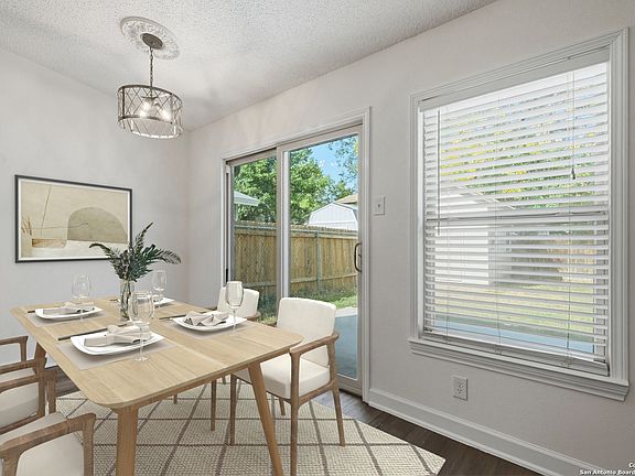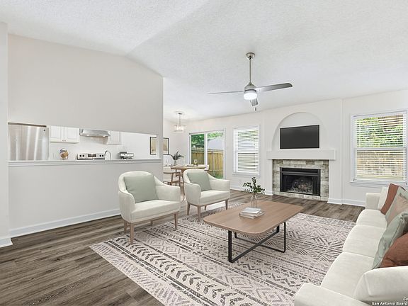 Welcome to this beautifully fully renovated four bedroom single story home in the highly desirable Emerald Valley area, offering a perfect blend of modern updates, comfort, and convenience. The spacious open layout is filled with natural light and showcases all-new flooring, a stunning upgraded kitchen, and beautifully updated bathrooms throughout. The primary suite serves as a true retreat, featuring dual walk-in closets and a refreshed, spa-like bathroom. The living space offers high ceilings and a cozy fireplace for gatherings or a quiet night at home. Step outside to an oversized concrete patio-perfect for outdoor dining, gatherings, or relaxation-along with a storage shed for added convenience. Located in a mature, well-kept community offering fantastic amenities, including pools, a park, and scenic walking trails, this move-in-ready property delivers comfort, style, and an unbeatable location near shopping, dining, and major highways. minutes to Bandera Road, 151, IH10, Loop 410 and Loop 1604. Northside ISD Schools. Open House 11/22 and 11/23 11am-2pm
