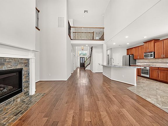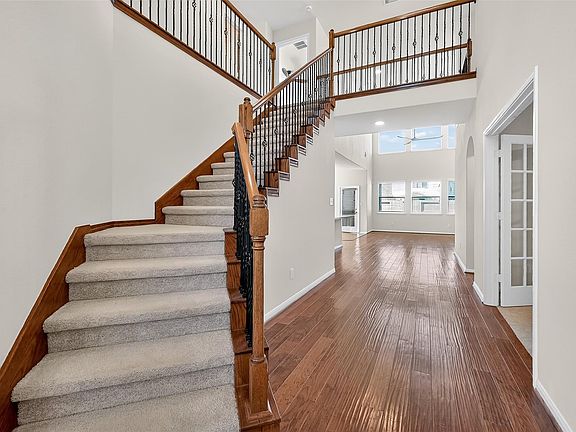 Bright and welcoming two-story home on a quiet cul-de-sac in the Mirabella community! The first floor offers a formal dining room, airy two-story living room, home office, half bath, laundry room, and a spacious primary suite with a large walk-in closet and relaxing en-suite bath with soaking tub and separate shower. Upstairs includes a fun game room, one bedroom with its own bath, plus two more bedrooms and another full bath. Enjoy a covered patio and backyard perfect for relaxing or entertaining. Mirabella offers amazing amenities five pools, splash pads, BBQ areas, a fitness center, pickleball, basketball, volleyball, tennis courts, and playgrounds throughout. Convenient to Cypress schools, shopping, dining, and major highways, this home is cheerful, roomy, and ready to enjoy!