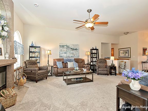 Beautifully maintained ranch in Wilmot Farms on a peaceful dead end road on an acre of land, feeling like an even larger lot as it is only 1 of 2 homes on this street with no other houses on either side. The heated 4 car garage has an overhead door on the back side of the property for convenient lawn care storage or golf cart storage within a neighborhood area that is golf cart and UTV friendly. The inviting foyer leads to a grand living room, ideal for relaxing or entertaining and complete with a cozy fireplace. Newer quartz countertops and custom cabinetry in the kitchen with an attached breakfast nook. Adjacent to the kitchen, the formal dining room is perfect for hosting holiday meals or family gatherings. The spacious master bedroom boasts double walk-in closets and a private en-suite bathroom with dual vanities, soaking tub, and separate shower. With 3 spacious bedrooms and 2 full bathrooms on the main level, the expansive 10' ceilings throughout make each room feel luxurious. The fully finished basement has an additional 3 bonus rooms, a storage/electrical room, full bathroom, bar, and theater with a mounted projector-- perfect for entertaining friends and family or for an in-law arrangement. There is an egress/escape window in the theater room if a true 4th bedroom is desired in the basement. All new stained exterior siding, all new roof in 2020, and the back deck connects to a heated above ground pool. Welcome home!