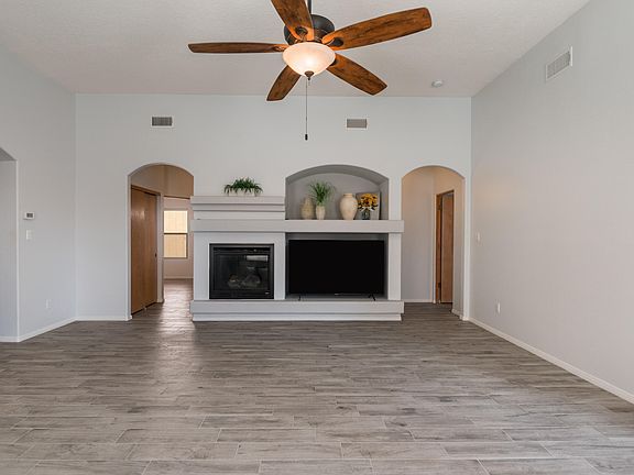 Fall in love with this single-level gem, perfectly located, w/easy access to I-40, downtown, Sandia Labs, shopping & restaurants! The moment you walk in, you'll be charmed by the arched doorways & beautiful porcelain tile flooring throughout. Recently painted, the home offers generous space for relaxing & entertaining. The fabulous great room features a gas fireplace, raised ceilings, decorative niches, & sliding door that opens to a covered backyard patio. The spacious kitchen offers abundant of cabinetry, gas stove, microwave, & breakfast nook tucked into a bright bay window. The private primary suite is separated from other bedrooms & includes an atrium door to the patio. The ensuite bath offers double sinks, garden tub, & walk-in closet. Additional highlights include: MORE!