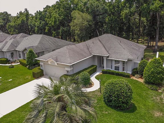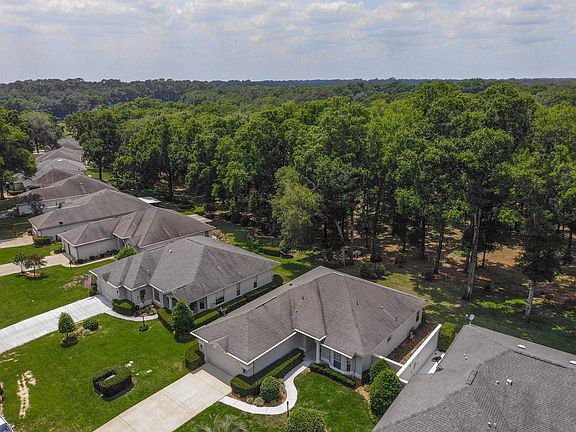 Here's your opportunity to live the Florida lifestyle you have been dreaming about. This Villa is nestled into the beautiful community of Rainbow Springs Country Club Estates. Loaded with amenities such as: swimming pool, tennis courts, gym, restaurant/bar, 24/7 roaming security, residents private access to Rainbow River, lawn maintenance, parks, and lots of nature. Step out onto your screened lanai and enjoy a morning cup of brew while you listen to the birdsong and enjoy the peaceful view of the wooded backyard without site of neighbors or the sounds of urban life. No need to worry about cutting the grass that day, since your HOA covers all that for you. You can spend your free time with friends and family on the Rainbow River using your private resident access; where you can launch your kayaks, have a swim, or enjoy a cookout under the cover of the pavilions. This home's open concept makes it great for entertaining. Your easy to navigate kitchen features a double oven, above range microwave, french door refrigerator with freezer drawer below and water/ice dispenser on the door, and dishwasher makes family gatherings a breeze and clean up easy. There's even room for an island, should you want one. The dining room is surrounded with windows and a glass sliding door providing plenty of natural light where you can enjoy more views of your beautiful backyard. Your Master Suite offers private access to the lanai, as well as a spacious closet, and large en suite. The en suite boasts a double vanity, step in shower, and a separate jetted spa tub. On the other side of this 2-way split floor plan your guests have their own room with double closets and another full bath with step in shower/tub combo. Your indoor laundry room leads out into your spacious 2-car garage with shelving and workshop all ready for your projects and storage. The third bedroom can be additional space for guests or a bonus room; such as an office or den. A new roof will be installed soon and the HVAC is well maintained. The home is sold furnished and is ready for you to move in and start living.