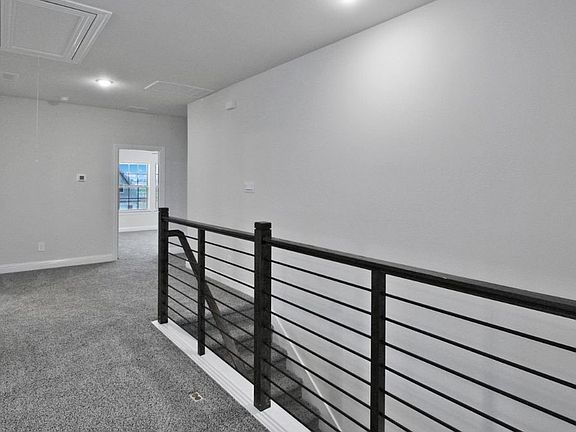 The kitchen is a chef’s dream, featuring painted cabinets, sleek granite or quartz countertops and stainless steel appliances. The massive island seats up to five people, making it perfect for gatherings. The kitchen overlooks the expansive living area, which boasts soaring 2-story ceilings, large windows for abundant natural light, and a cozy gas fireplace.