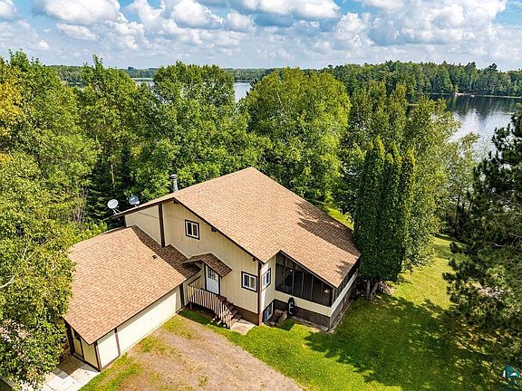 This stunning 3-bedroom, 3-bathroom home on Aerie Lake offers 300 feet of pristine lake frontage. Located on a peaceful dead-end road, the property features a spacious 2-car attached garage and a cozy wood-burning fireplace. Enjoy the sun-drenched solarium and the walk-out deck that faces the tranquil waters of the lake. The lower level boasts a walk-out design with bonus living space, including a sauna and an additional bathroom—perfect for relaxation and entertaining. Large windows and tall ceilings throughout the home provide an abundance of natural light and breathtaking views of the lake. Just 30 minutes from Duluth, this home combines serene lakeside living with easy access to the city. A new septic system will be installed prior to closing, ensuring a smooth transition to your new lakeside retreat.