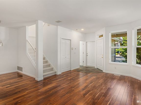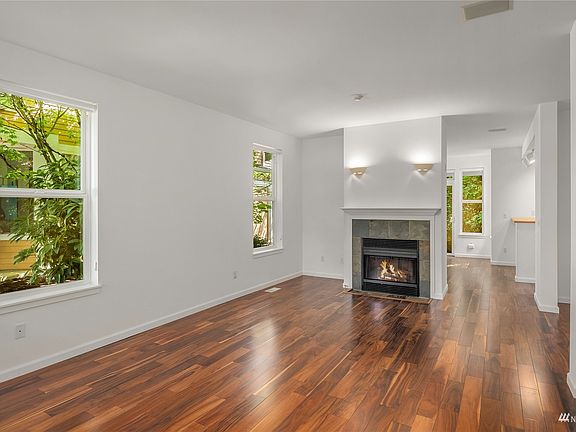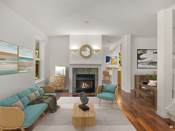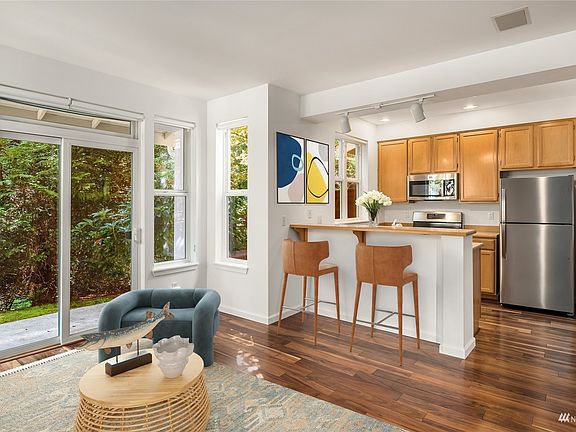 Welcome to your charming end-unit townhome in coveted Rivertrail community. This 3 bed/2.5 bath has a fantastic layout with large windows for maximum sun exposure. Enjoy cozy nights by the fire, with informal and formal living space and sliding glass doors onto private shaded patio to cool off and relax. Love the vaulted ceilings in large master bedroom with 5-piece bath and walk in closet. Hardwoods throughout, good sized bedrooms and bedroom level laundry. Attached covered garage and plenty of guest parking. Can't beat the location! Minutes to Microsoft, downtown, freeway access, shops, parks and excellent school district. Home is sparkling clean with all brand new appliances, ready for new owners!