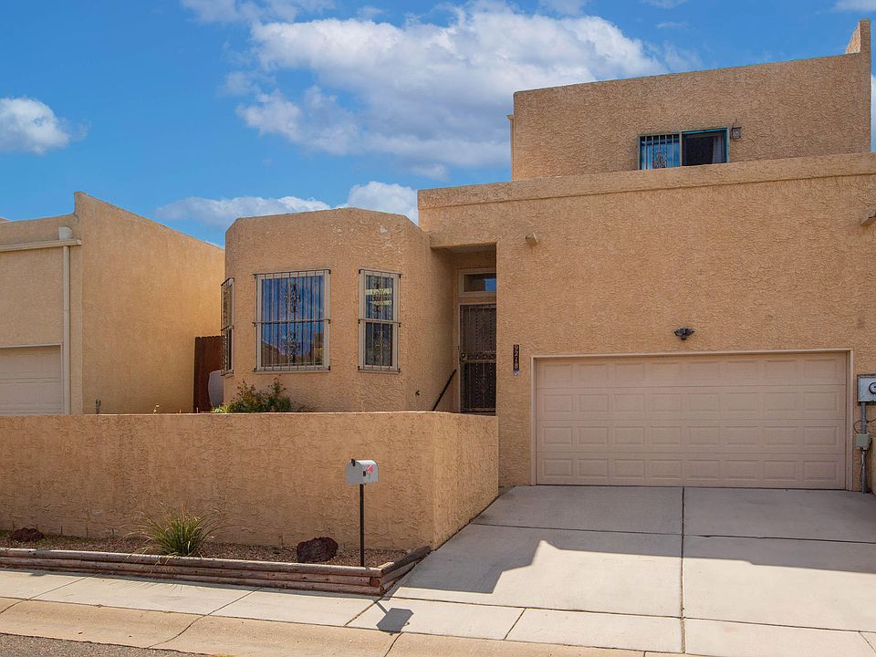 Bright and inviting 2-bedroom, 2-bathroom patio home in highly desirable NE Albuquerque. Featuring skylights, vaulted ceilings, and a cozy pellet stove. This home offers a low-maintenance yard and all appliances conveying. Over-sized garage provides extra storage space. Ideally located near shopping centers, walking trails, Osuna Golf Course, and parks--perfect for easy living!
