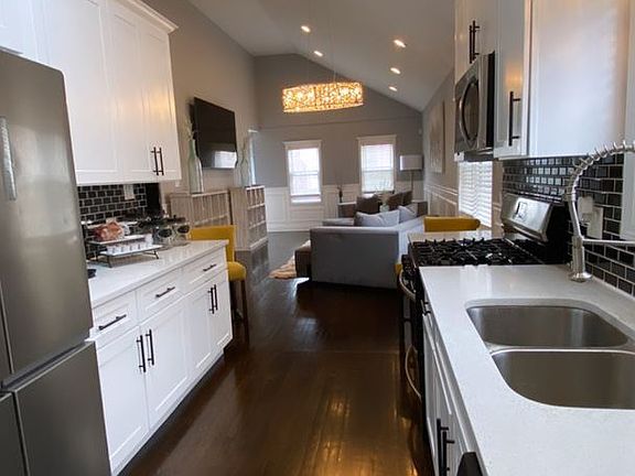 Truly A must see & updated from top to bottom. This Raised Brick Ranch features 4 bedrooms and 2 full baths. Located on a quite well maintained block it will not last long on the market. Deep Mahogany hardwood flooring throughout main level. (except 1 carpeted bedroom) Open floor plan LR DR area boasts. Vaulted Ceilings, recessed lighting, warm color scheme and white wainscoting which adds a touch of elegance to this GEM. Kitchen is a dream & includes 4 SS appliances, granite counter tops, new 42in white shaker cabinetry, Sharp back splash that makes this kitchen pop. PLUS A Skylight that provides fantastic natural light. Bedrooms are a nice size, includes ceiling fans &great closet space. Remodeled bathrooms reflects the most modern touches & finishes. Retreat to your finished basement w/up to date vinyl plank floors, recessed lighting & wainscoting. Enjoy the family room, additional bedroom, bath & Laundry room. Exterior provides side patio area where you can watch movies on the projector wall, backyard with privacy fence all around.