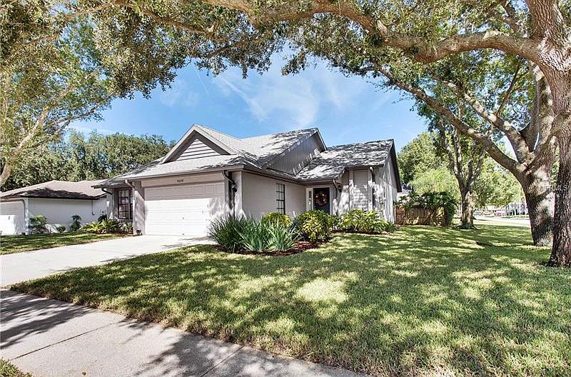 Looking for a move-in ready home located in the desirable community of River Crossing? Look no further! Walking in, you're greeted with open concept living. Inside this well-maintained home, the tall, vaulted ceilings give this cozy home a much larger feel. The large great room has 20X20 porcelain tile and recessed lighting. The open style kitchen includes maple cabinets, updated backsplash and under cabinet lighting. The master bath has stunning travertine tile throughout in addition to a walk-in closet. Backdoor sliders lead you to a large screened in/covered lanai that overlooks lush landscaping and an outdoor area perfect for entertaining. Home has an oversized backyard with plenty of room for a pool. The home sits on a corner lot with four gorgeous oak trees and is within a mile to beautiful Starkey Wilderness Park. Seller is providing a 1 year home warranty. Home also has a transferable termite warranty. Low HOA's, No CDD's. This home is in GREAT CONDITION.... CALL TODAY!