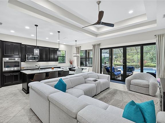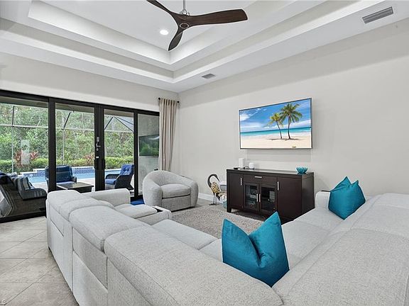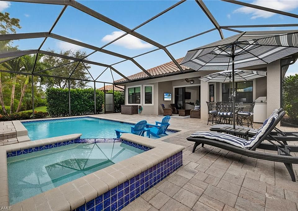 Gorgeous and Private preserve home nestled on an ideal lot with heated, saltwater pool and spa in Bonita Isles! Beautifully maintained and move-in ready, this spacious 3-bedroom + den, 2 1/2-bath, single-family home features the largest floor plan available in Bonita Isles. The gourmet kitchen opens to a bright family room with sliding doors leading to a large screened lanai with built-in outdoor kitchen perfect for entertaining. The primary suite offers two oversized walk-in closets, dual vanities, and a large walk-in shower. Two guest bedrooms share a private bath with a pocket door for added privacy. The home also includes a formal dining room ideal for larger gatherings or a potential home office space and a separate den/flex space. All windows and doors are impact resistant and home is located outside a flood zone. Bonita Isles is a highly desirable gated community offering pickleball, tennis, resort-style pool, fitness center, clubhouse with outdoor kitchen, and low HOA fees. Conveniently located just 6 miles from Bonita’s beautiful beaches and close to downtown Naples, Coconut Point Mall, Miromar Outlets, The Mercato, and RSW Airport. This stunning home truly has it all—space, style, and location!