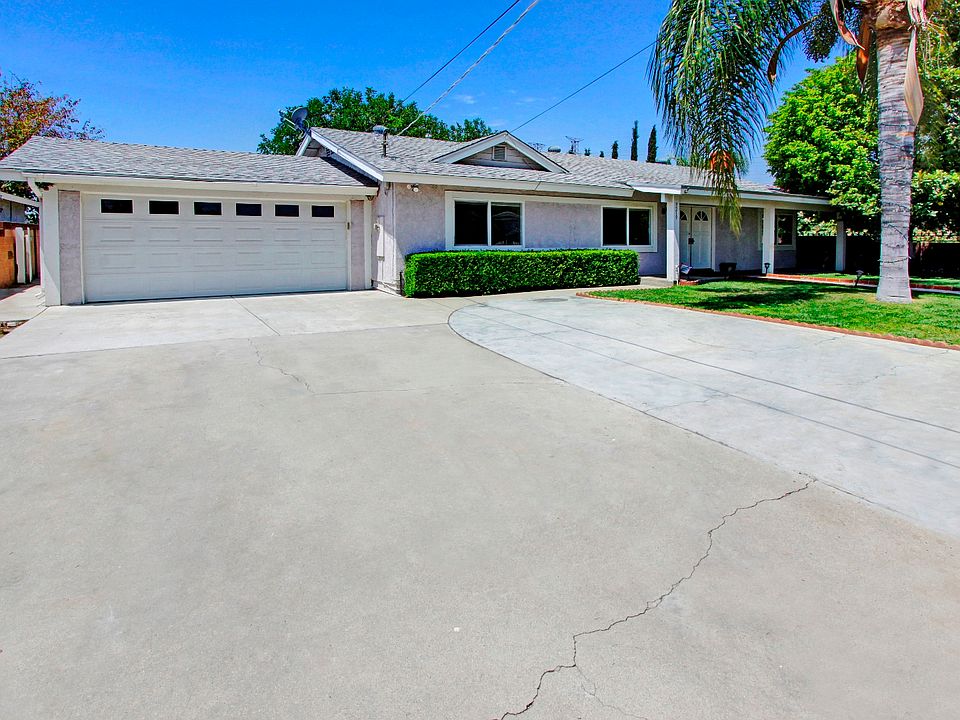 Great 5 bedroom, 3 bath home on a very quiet street in Sun Valley. This home features tile and carpet floors, a large living room with vaulted ceilings and fireplace. Huge kitchen with stove and refrigerator, plus an eating area. The front of the home features 3 bedrooms including a spacious master suite. The rear of the home has 2 additional bedrooms plus a kitchenette with a separate entrance, ideal for extended family living, or just use it all as one big house! There is an enclosed patio with laundry and 3rd bath. The back yard is fully fenced and large, with a covered patio and storage shed. There is an attached 2 car garage, and central heat and air. This is a great property and won't last!!