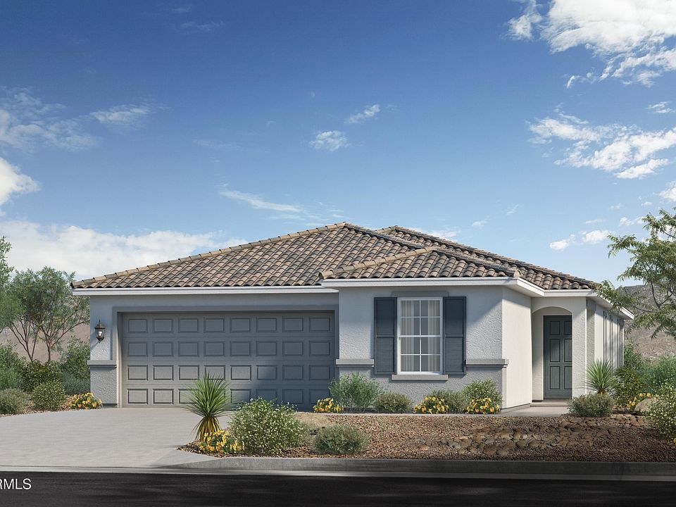 This beautiful single-story home features three bedrooms, two baths and offers 9ft ceilings an open concept floor plan. The modern kitchen with 42-upper cabinets, large island, quartz kitchen counter tops, under mount sink with Whirlpool appliances including, gas range, microwave and dishwasher. The primary suite at the back of the home includes a walk-in closet, and the primary bath boasts a large shower and dual square sinks. Two additional bedrooms, and the secondary bath has extended cabinet with knee space. Custom 24'' X 24'' throughout the house with carpet in the bedrooms. Additional features include ceiling fan pre-wires in every bedrooms and great room.
