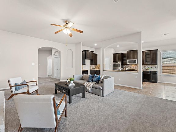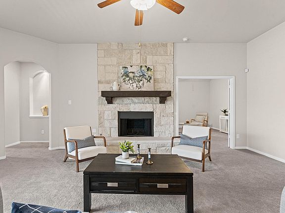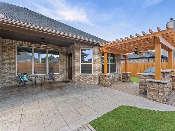 This beautiful home perfectly blends style, function, and comfort. A formal entry leads to an interior featuring a versatile dining room or home office tucked behind French doors. The kitchen features granite countertops, tile backsplash, breakfast bar and walk-in pantry. The sunlit breakfast room flows into a large family room, featuring a stone-surround fireplace. The primary suite easily accommodates king-sized furniture with room to spare for a sitting area. Its spa-like bath features a dual sink vanity, garden tub, separate shower, and a large walk-in closet. Secondary bedrooms share a hall bath equipped with a jetted, walk-in tub. The beauty extends outdoors to a covered patio as well as a pergola with built-in grill. This home comes equipped with solar panels and a whole-home generator, offering energy savings and peace of mind no matter the weather. Community amenities include a clubhouse, fitness center, playground, pool, splash pad, and walking trails.