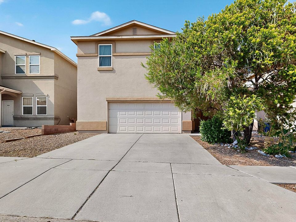 Spacious home in a great neighborhood with fantastic schools! Plenty of room to grow and spread out with a thoughtful floor plan. Primary suite upstairs offers a cozy gas log fireplace, garden tub, and separate shower. One bedroom with 3/4 bath downstairs is perfect for guests or multi-gen living. A huge loft provides a versatile second living area. The open kitchen flows into the dining and living spaces, featuring abundant cabinets and counter space. Enjoy a walled backyard with drip system and a peek at the Sandias. Convenient access to main thoroughfares makes commuting a breeze.