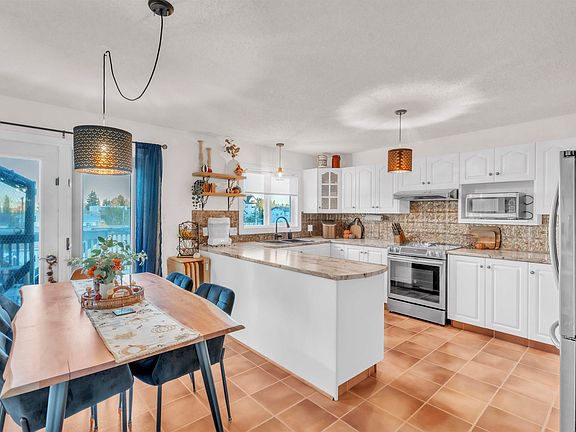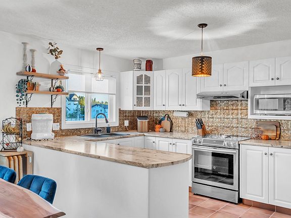 Perfectly positioned just steps from the marina, restaurants, and shopping, this home invites you to step inside and be greeted by natural light streaming through large windows, highlighting the warm hardwood floors that flow through the living room and hallways. The spacious kitchen features a peninsula with seating, a customized pantry, and abundant cabinetry and counter space. Down the hall, you’ll find three inviting bedrooms, including the primary suite with a walk-in closet complete with custom built-ins and a cheater ensuite. The bathroom is fresh and modern with double vessel sinks, a shiplap feature wall, a glass shower/tub combo, and matte black finishes for that perfect touch of contrast. Head downstairs to the walkout basement, where possibilities abound! Two additional bedrooms, a full bath, and a spacious family room with a gas fireplace and bar make this the ultimate hangout space—or a great setup for a future rental suite, thanks to the separate entry. Furnace (2025), Shingles (2016)