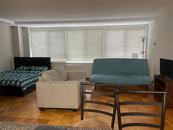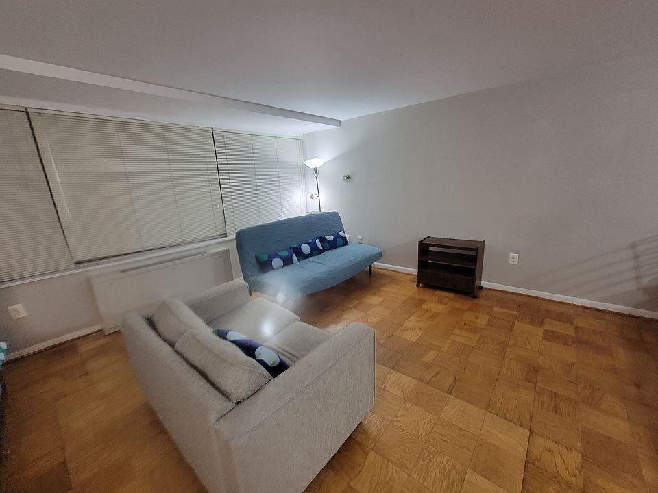 FOURTH FLOOR, FULLY FURNISHED, QUIET CORNER FACING POOL UNIT WITH GREAT VIEW. Available Dec 27, 2025. Large, modern, luxury apartment (500 sq feet) with great view, located in much sought-after Jefferson House. Across the street from GWU Hospital and just steps from the Foggy Bottom Metro, GWU campus, new Whole Foods and Trader Joes groceries, Georgetown, downtown DC, Dupont Circle, World Bank, IMF, Kennedy Center, and all the best restaurants in DC. This location is the BEST in the city for GWU students, medical or law students, medical residents, doctors, researchers and those working in the Foggy Bottom, Washington, DC community. A luxury building with 24/7 front desk service, newer camera security throughout the building, new washers and dryers, completely renovated lobby and corridors, new elevators, a professional Maintenance Engineer on the premises, a General Manager on the premises, daily common areas cleaning in the building, a large in-ground pool and deck, and much, much more. This is the BEST location in the city for transportation and walking to your destinations because of its central location near the Foggy Bottom/GWU Metro. All utilities (Electricity, water, heating/cooling) are included in the rent. Unit includes fridge, bed with mattress, study table, chair, and futon. Looking for renter to lease for 1 year.