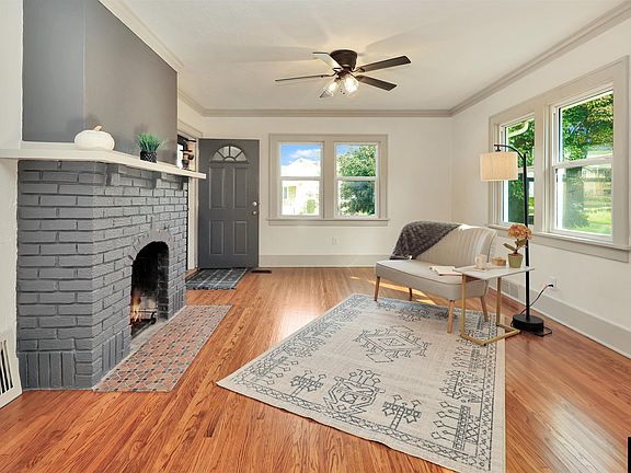 This charming 3-bedroom home sits proudly on a corner lot and has been thoughtfully updated from TOP TO BOTTOM WITH FINE QUALITY FINISHES BY PROFESSIONAL CONTRACTORS! The new, open-concept kitchen flows seamlessly into the rest of the home, featuring gorgeous cabinets, granite countertops, and brand-new appliances—including a garbage disposal! Original oak hardwood floors, refinished by Jon Otto Wood Floors, add warmth and character throughout. Crown molding adds elegance to the main living area along with an original wood burning fireplace.The spacious, fully renovated bathroom sparkles with fresh finishes. Every room has been painted as well as the exterior in smart, modern colors that make the home feel fresh and welcoming. Enjoy views of Leif Erickson Park—with its playground, tennis and pickleball courts, and pool—right across the street through BRAND NEW WINDOWS. The inviting front porch boasts new outdoor carpeting and overlooks freshly landscaped grounds. Find Bryant school just 1 block away. A newer roof (installed around 2018) offers peace of mind, while the oversized single-stall garage with opener keeps your vehicle secure. The fenced yard is perfect for pets, play, or gardening. Laundry with washer and dryer (no warranties) plus more opportunity for living space (sheetrocked walls) and storage is in the lower level. This move-in ready home blends modern upgrades with timeless charm—ready for you to enjoy!
