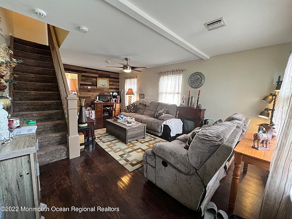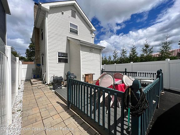 Just 8 blocks from beautiful Union Beach Pier and beachfront! This well maintained affordable 2 story home is sure to please. Nestled on the end of a cul de sac dead end street with several brand new homes. This home boasts an oversized driveway with fresh blacktop, updated stainless steel kitchen appliances, ceiling fans, updated baths, freshly painted, new carpet on stairs and wood vinyl flooring in several rooms. Modern shiplap design wall in living room. Great use of space throughout. Private laundry room. Backyard privacy w new vinyl fenced yard and new composite deck is great for entertaining. Great for commuters, as it's close to train, bus and ferry. Also great for first time home buyers or those looking to downsize. Nothing to do but move right in enjoy. Flood Insurance $700 yr of