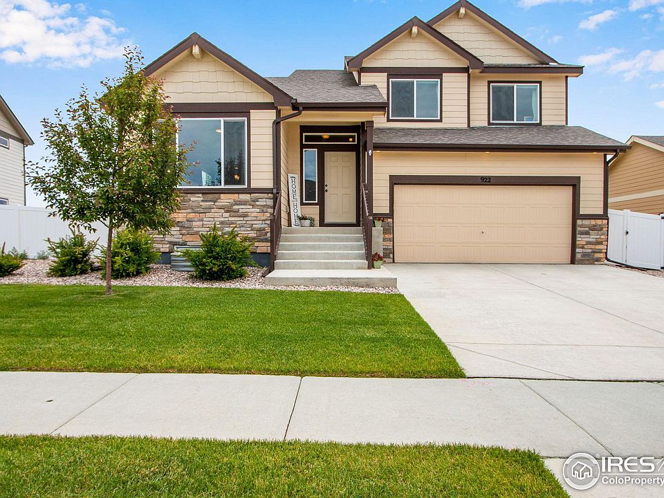 This is a great home. High ceilings, large windows, lots of light, 2 living spaces, laundry upstairs w/ bedrooms, open kitchen, walkout lower level to a covered patio! Elbow room between houses. Mountain views from 2 bedrooms. XL soaker tub in the gigantic owner's suite. Fully insulated garage w/ cabinet/workbench in 3rd bay & 3 windows! Neighborhood parks, paths, & fishing pond right across the street. Non-potable water to keep yards green. Garden box & double gate for toy storage on the side.