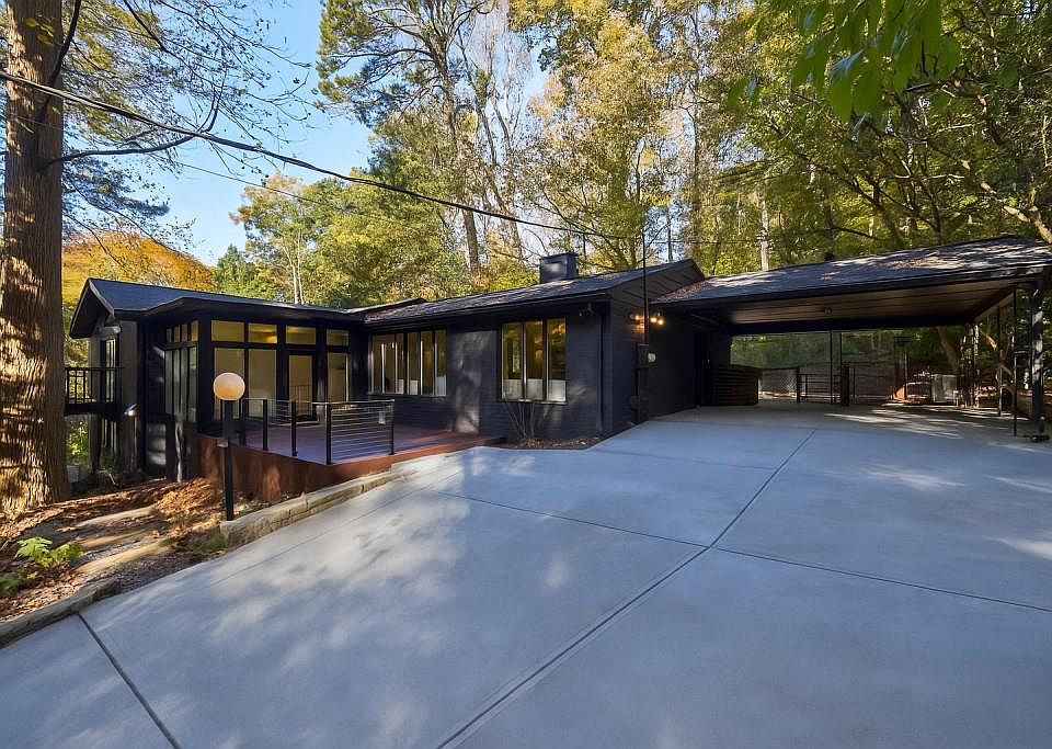 BRAND-NEW RENOVATION in Barton Woods! This stunning Mid-Century Modern has just finished a complete renovation. All new kitchen, bathrooms, systems, roof, everything you could ever want! Positioned perfectly on the lot so that it blends into the gorgeous landscape, the home is over 200 feet from the street. Upstairs you will find a large open concept living room, dining room and kitchen amidst gorgeous hardwood floors. From main living space travel down the hall to find primary bedroom suite and two secondary bedrooms plus two original tiled baths. The primary suite has it all, more soaring ceilings, floor to ceiling windows, ensuite bath, massive closet and balcony overlooking your personal Fernbank Forrest. Now, lets talk about downstairs, you will find the home's private library, a wine cellar and a den with a small kitchenette or wet bar, another bathroom and behind the den is your 4th bedroom. This lower level also holds the laundry room. You are walkable to Deepdene Park, Olmstead Linear Park, Fernbank Museum and so much more. This home is a steal!