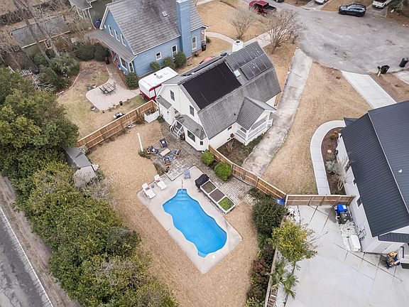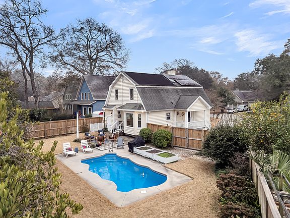 Nestled in one of James Island's most coveted neighborhoods with no HOA, this 3-bedroom, 2-bathroom home offers a perfect blend of comfort, upgrades, and location, all with A-rated public schools. Upgrades are numerous and include: Heated, saltwater pool; Solar panels; Windows with lifetime transferable warranty on downstairs windows; HVAC (2023 upstairs and 2024 downstairs, both under warranty); Fence (2024); Engineered bamboo hardwood flooring (2022); Irrigation system with separate meter (2023); Shed (2024); Vapor barrier under house (2024); and Natural gas stone fireplace. Even more, there are raised bed gardens, mature blueberries and blackberry bushes, and a large fig tree, all producing fruit every year! The upstairs is an entire primary suite, boasting the following:Large bedroom with office space; Massive 14.5 ft long walk-in closet; Huge bathroom with his and hers separate vanities, separate tub and shower, and water closet; and Easy attic access through 2 different doors. Location is everything, with public schools zoned for this house (elementary, middle, and high school) testing at either 9/10 or 10/10. You are 10 minutes to renowned dining and history in Downtown Charleston, 12 minutes to Folly Beach, and walking distance to dog parks, recreation departments, and sports complexes. Don't miss the chance to experience the best of Charleston/James Island living, schedule your showing today and see for yourself why this home is a true gem! This home won't last.