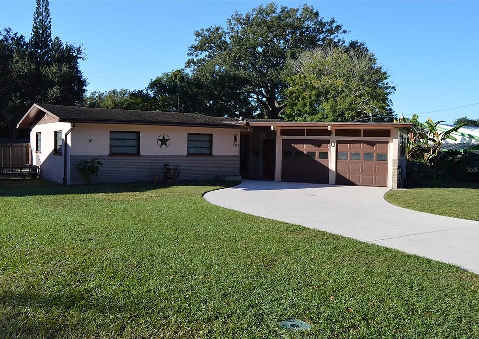 This beautifully updated, mid-century, single-family home sits on nearly a quarter-acre lot in a prime central Lakeland location. Tucked away on a quiet, no-outlet street, it offers the perfect balance of city convenience and suburban peace—just minutes from downtown shopping, dining, and local parks. Inside, the home features 3 bedrooms and 2 full baths, with an open-concept layout designed for modern living. The updated kitchen features all newer stainless steel appliances and a stylish island that’s perfect for entertaining. The kitchen opens to a spacious living room and bright sunroom, filling the space with natural light. Additional highlights include a beautifully updated common bathroom, generously sized bedrooms, a 2-car garage, and a versatile 25'x10' bonus room off the garage, ideal for a workshop, playroom, he/she cave, or hobby space. Step out back to enjoy a private, fully fenced yard, complete with a raised porch and a tranquil waterfall koi pond - perfect for relaxing, grilling, or hosting weekend gatherings. A back-yard concrete pad offers secure parking for a trailer, boat, or RV! Also includes two storage sheds (one is 8'x13') that provide plenty of space for all your outdoor gear and projects. Additional upgrades include a 2017 Roof replacement with architectural shingles, 2022 Mr. Cool AC unit with heat pump, freshly painted interior and exterior. Ring security system included. Transferable termite protection plan. No Deed restrictions! This home is move-in ready, impeccably maintained and priced to sell - This is the home you’ve been waiting for!