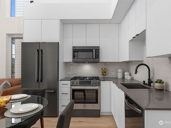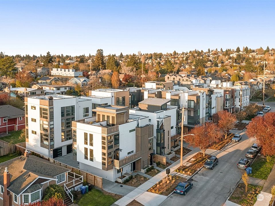 Introducing our latest collection of turn-key residences in West Woodland, built by a trusted, locally-based builder Greencity Homes. These prime residences offer various entry-level options, including guest suites or attached garages with off-street parking available for select homes. Luxury finishes feature Bosch SS appliances, quartz counters, custom lighting, soft-close cabinetry, and Surge Dune/Coastal evoke flooring. All bedrooms are afforded private levels with personal spa-like baths and large closets. Spacious roof decks show off your fantastic West Woodland location and connection to everything Ballard, Fremont, & Wallingford offer. Almost half the community has gone pending before even hitting the market - get in while you can!