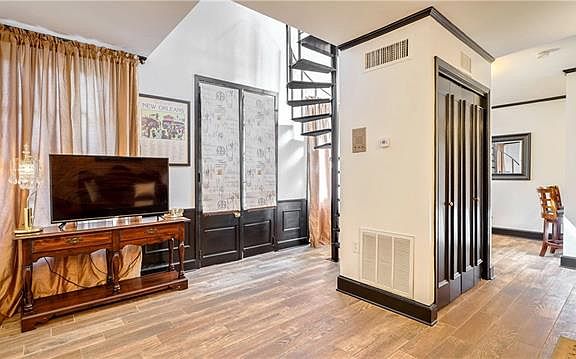 Shared courtyardUnique vintage touchesStainless steel appliancesGranite countertopsNew floorsStylish kitchenWrought iron spiral staircase