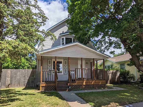 Perfect Starter Home with a sizable covered front and back porch to welcome you home. This home features two large bedrooms and a full bath on the upper floor. On the main level you'll have a generous amount of living space in the living room and the dining area as well as plenty of cupboards and counter space in the kitchen. The back yard is a favorite gathering area with the privacy fence and mature trees and bushes. The enclosed back yard gives you direct access to the freshly painted two stall garage. You'll also appreciate the maintenance free 50 year metal roofing on the house and garage. Don't wait to see this well maintained home!!