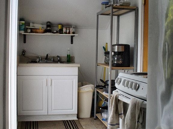 Second floor, PRIVATE entrance, near Old Town Bakery. Nice rooms and storage. Ample room for scooters and bikes. W/D coin-operated 1 block away.