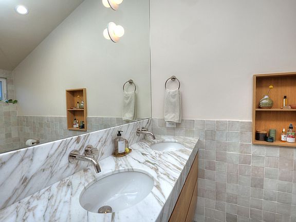 Nestled into the lush trees of the Mesa neighborhood, this beautifully updated four-bedroom, three-bathroom home offers a rare combination of vaulted ceilings, large windows and sun-splashed interiors. Tastefully and extensively remodeled with premium finishes, this home exudes an easy elegance end modernity.