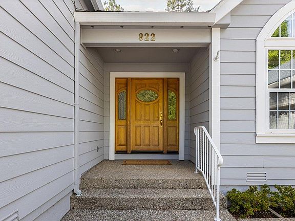 This beautiful home in the desirable Carriage House subdivision offers a warm and inviting feel. Step inside to a spacious light filled living room with tall ceilings, large windows, built-ins, a cozy fireplace, and serene views of the backyard. The dining room is ideal for entertaining or family gatherings. The generous kitchen features an island with gas cooktop and prep sink, a warming drawer, double ovens, abundant storage, a dining area, custom cabinetry for display and additional storage, and opens to the back deck. The home offers three large bedrooms, each with its own private bath. The primary suite features a sitting area with direct access to the deck, two walk-in closets, a bath with both a tub and shower, and skylight. Additional highlights include hardwood floors, a separate bonus room beneath the house perfect for a man cave or hobby space, and a spacious laundry room with plenty of storage and a sink. The laundry room opens to a breezeway with a pathway to the three-car garage. The deck with a powered awning overlooks Wolf Creek, offering a peaceful retreat to relax and enjoy the soothing sounds of the water. Low-maintenance landscaping enhances the serene outdoor setting. Conveniently located near shopping. This home is truly a special find!