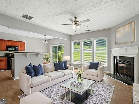 Cozy fireplaceModern light fixturesNew blindsGenerous loftWall of large windowsBright eat-in kitchenSunlit breakfast room