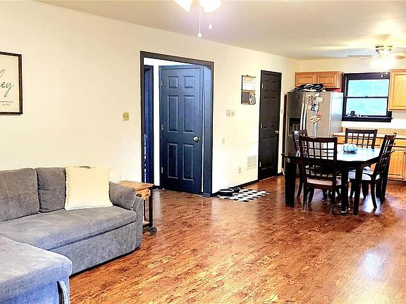 Riverfront getaway or permanent residence. Go up the stairs into an open concept living room/ kitchen area with tons of cabinet space and walk in pantry. The kitchen/living area is wired for can lighting but not installed. Attic fan helps cool in the summer, tankless water heater that works great and house is 220 electric installed by a commercial electrician. Two bedrooms one full bath with laundry on main level. Down stairs you have an XL double car garage with plenty room for workspace/hang out space and storage. The garden area on the right side of house has a built in irrigation system. This has 1.6 acres on the Bourbeuse river right behind your house. You can drop a kayak, great for fishing, seeing all kinds of wildlife. Huge yard that's level great for playing volleyball, has a BBQ pavilion area, fire pit, playing disc golf and many more yard games. This area is very quiet and secluded yet close enough to get to town in minutes. All neighbors are great and look after each other.