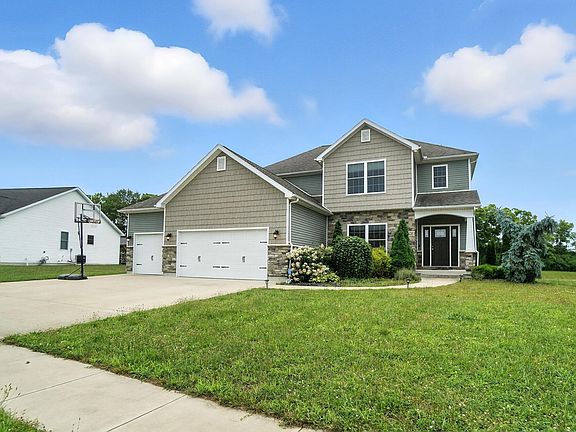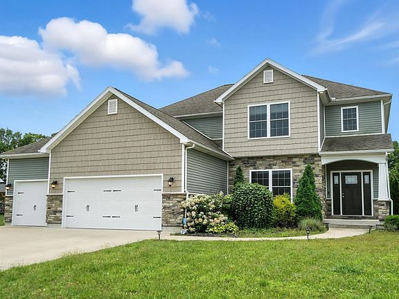 Welcome to Harlow on Haverhill, a custom-built luxury home by Harlow Homes located in the Nottingham subdivision of Troy. Situated on two parcels totaling approximately a half-acre, this 4-bedroom, 3.5-bathroom residence offers exceptional craftsmanship, modern amenities, and a functional layout designed for today's lifestyle. The first floor features a spacious great room with a floor-to-ceiling stone fireplace and built-in shelving, a formal study with French doors, and an open-concept gourmet kitchen complete with granite countertops, a large island, tile backsplash, soft-close cabinetry, and a walk-in pantry. Nine-foot ceilings enhance the open feel throughout the main level. Upstairs you will find three bedrooms, each with a walk-in closet, including a generous owner's suite with a tray ceiling, soaking tub, step-in shower, double vanity, and walk-in closet. The finished lower level provides additional living and entertaining space with a full guest suite, large family/rec room, second kitchen/wet bar, full bath, and ample storage. Outdoor living includes a custom brick paver patio overlooking the private backyard. The property also offers a three-car attached garage and is situated on a quiet cul-de-sac with natural privacy.