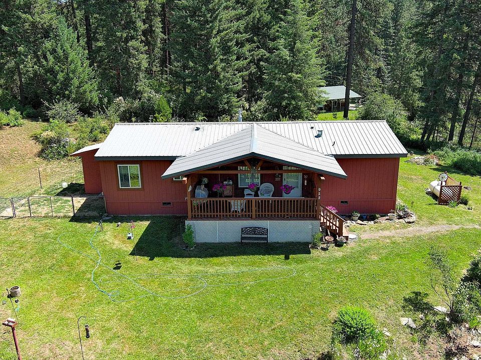 SUPERB LOCATION!! This MH home is nestled on 2 wooded acres and only 7.5 miles to Dworshak Reservoir for boating, fishing, and camping!! Home offers over 1300 sq.ft with 3 bedrooms, 2 full baths, and spacious kitchen with tile countertops. Large covered deck out front offers beautiful views. Enjoy some some self sustainment with a large fenced-in garden and chicken coop. Huge 12'x24' shed for storage. Electric furnace and propane fireplace provides the heating. Dog run for your furry friends. Individual well and septic system. Find your serenity!!