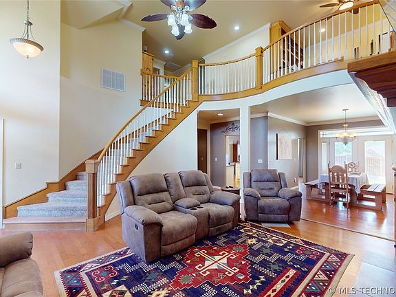 Take a look at this wonderfully constructed 2 story home situated in the Rose Creek Addition. This home features 4 bedrooms, 2 1/2 baths, 2 dining areas and an office. The Cinderella staircase that comes down and meets the open-concept living area is very enchanting. Primary bedroom suite is downstairs and is very spacious, with 3 nice sized bedrooms upstairs. The 4th bedroom is huge and can be a bonus room, game room or another living area. The office is located upstairs and has a nice view of the downstairs. The chef's kitchen has all the amenities with all stainless steel appliances, nice 5 burner gas range and another spacious eating area. Primary walk-in closet is also a safe-room/storm shelter with plenty of room for all the necessities. Extra water shut-off valves were installed around the house for convenience incase of emergencies. Take a look at what all this home has to offer.