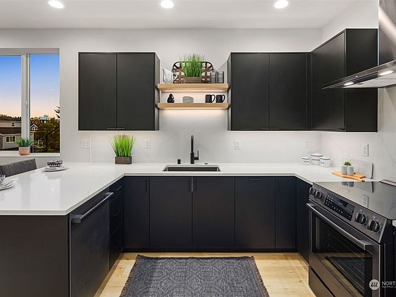 Presenting an exceptional modern new construction residence in one of Seattle's most desirable locations, by Seattle Custom Contractors. Step into a beautifully crafted open floor plan showcasing designer living on every level: Chef’s kitchen w/ SS appliances, quartz counters, custom floating staircase, and powder on the main floor. Large windows offer abundant natural light throughout. Enjoy cozy mornings next to your fireplace or on one of your 2 terraces - one off the living & one off the primary! - True indoor/outdoor living. Primary suite offers a spa-worthy bath & large walk-in closet. Top it all off w/ a rooftop deck for those evening sunsets. Off-street parking w/ EV charging - this home has it all!