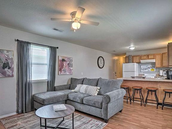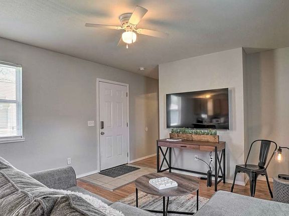 1 Mi to Main Street | Updated Interior | 0.6 to MSU West Plains Bedroom 1: Queen Bed | Bedroom 2: Twin/Full Bunk Bed w/ Twin Trundle, Futon MAIN FEATURES: Smart TVs w/ cable, modern interior design KITCHEN: Cooking basics, dishwasher, Keurig coffee maker, blender, microwave, ice maker, refrigerator, spices, toaster oven, water filter, stove/oven, dishware & flatware, breakfast bar w/ seating GENERAL: Free WiFi, keyless entry, complimentary toiletries, linens & towels, in-unit washer & dryer, central air conditioning, hair dryer, iron/board, laundry detergent, trash bags & paper towels FAQ: Pet fee (paid pre-trip), 4 steps required for entry, single-story home PARKING: Driveway (2 vehicles), street parking ADDT'L ACCOMMODATIONS: There are 5 additional properties available on the same street, each with separate nightly rates. If you would like to reserve multiple rentals, please inquire for more information prior to booking