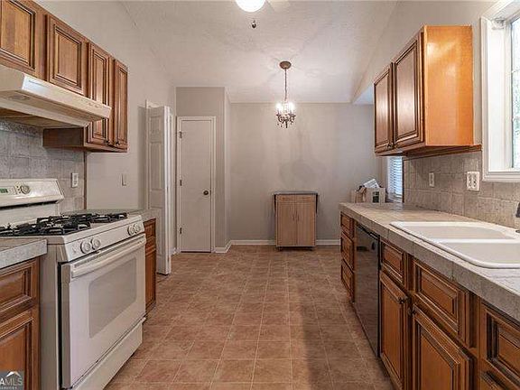 Fenced backyardHuge deckGenerous eat-in breakfast areaTile flooringTile countertopsOpen-concept kitchenCathedral ceiling