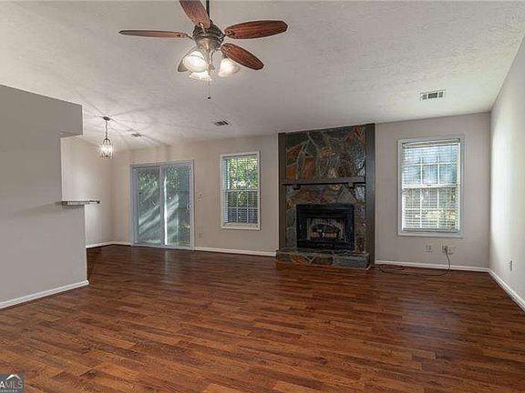 **Great Opportunity in River Oaks - Priced to Sell!** Don't miss this incredible value in the sought-after **River Oaks** community - **check the comps!** This home offers solid bones and tons of potential with a little TLC to make it truly shine. Step inside to a **spacious great room** featuring a dramatic **cathedral ceiling**, cozy **fireplace**, and built-in **bookshelves** - the perfect space for relaxing or entertaining. The **open-concept kitchen** flows seamlessly into the great room and includes a **generous eat-in breakfast area**, **tile countertops**, and a **pantry** for ample storage. Offering **three bedrooms** plus a versatile **bonus room** ideal for a home office, playroom, or guest space. The **primary suite** features a well-appointed **master bath** with **his and hers vanities** and all bathrooms include classic **tile flooring**. Enjoy the outdoors on a **huge deck** overlooking a **fenced backyard**, ideal for pets, kids, or weekend gatherings. A separate **outbuilding** provides **extra storage** or workshop potential. Located in a **top-rated school district** and just minutes from **restaurants, shopping, and Downtown Woodstock**, this home offers both convenience and value. Price Reflected is AS-IS