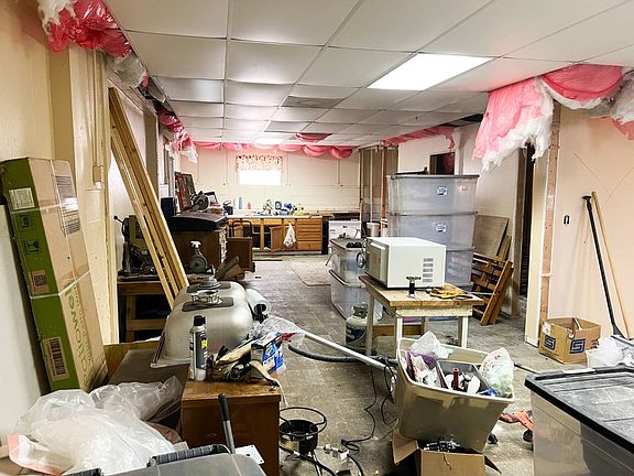 This unique property offers nearly 2,700 square feet of livable space on a 0.8-acre corner lot surrounded by a mix of young and mature trees. It includes two separate buildings, one 1,200 square feet and the other 1,488 square feet, both equipped with central air conditioning and central heating, and sharing a single hot water heater. One building features a partially finished full bathroom, while the other includes two half bathrooms. The west building provides the possibility to add overhead garage doors, making it easy to convert into a garage or workshop. This property presents an excellent investment opportunity, with the flexibility to live in one unit and rent the other, finish both for dual rental income, or finish the buildings off for a home with oversized garage/workshop. Located in a quiet area of Sabetha near playgrounds, splash park, ball fields, disc golf, and walking trail, it offers both convenience and comfort. The large open space with high ceiling is ideal for a game room, golf simulator, living/entertainment area, bedrooms, or a full kitchen, allowing endless possibilities for customization. Both buildings feature durable metal roofs. Spacious empty lot to the east. Covered awning between the buildings that could easily be enclosed if desired.